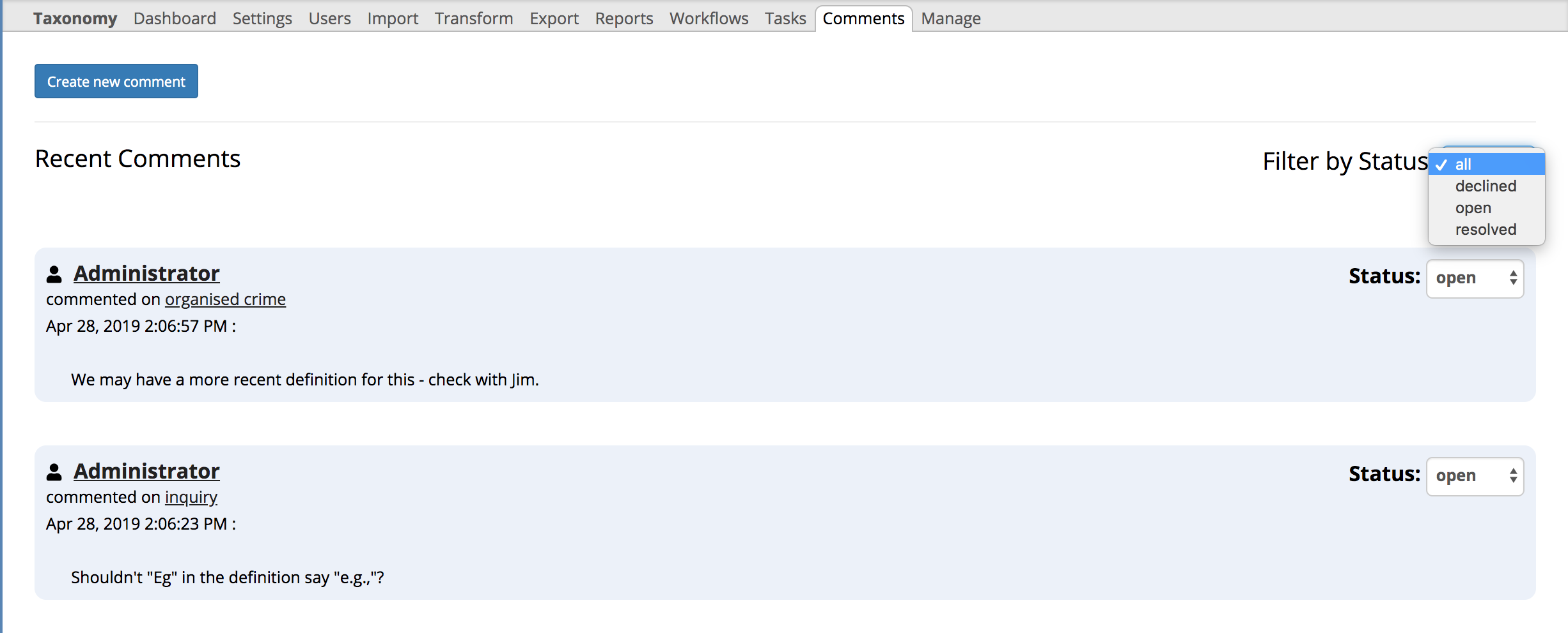 However, neither the change history, saved SPARQL queries, saved searches, workflows, comments or tasks will be cloned.
